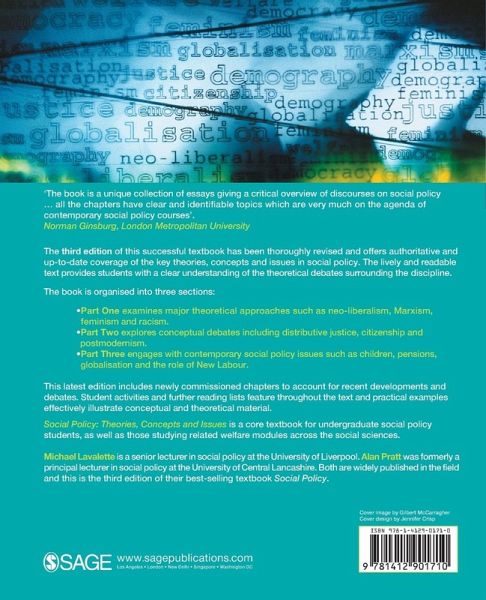 The Third Edition of this widely adopted textbook has been thoroughly revised and offers an authoritative and up-to-date coverage of the key theories, concepts and issues in social policy. The lively and readable text has been designed to provide students with the essential tools to gain a clear understanding of the theoretical debates surrounding the discipline.
