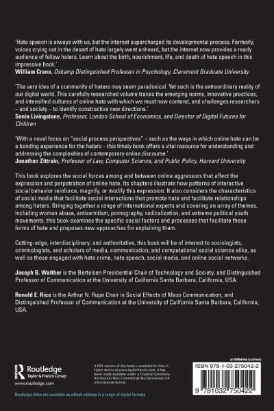 This book explores the social forces among and between online aggressors that affect the expression and perpetration of online hate. Its chapters illustrate how patterns of interactive social behavior reinforce, magnify, or modify this expression.