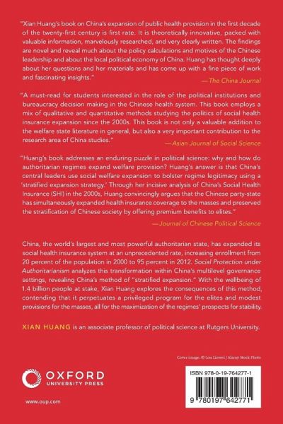 Why would an authoritarian regime expand social welfare provision in the absence of democratization? Yet China, the world's largest and most powerful authoritarian state, has expanded its social health insurance system at an unprecedented rate, increasing enrollment from 20 percent of its population in 2000 to 95 percent in 2012. Significantly, people who were uninsured, such as peasants and the urban poor, are now covered, but their insurance is less comprehensive than that of China's elite. With the wellbeing of 1.4 billion people and the stability of the regime at stake, social health insurance is now a major political issue for Chinese leadership and ordinary citizens. In Social Protection under Authoritarianism, Xian Huang analyzes the transformation of China's social health insurance in the first decade of the 2000s, addressing its expansion and how it is distributed. Drawing from government documents, filed interviews, survey data, and government statistics, she reveals that Chinese leaders have a strategy of stratified expansion, perpetuating a particularly privileged program for the elites while developing an essentially modest health provision for the masses. She contends that this strategy effectively balances between elites and masses to maximize the regime's prospects of stability. In China's multilevel governance, both centralized and decentralized structures are involved in the distribution of social health insurance. When local leaders implement the stratified expansion of social health insurance, they respond to varied local conditions. As a result, China's health insurance policies differ dramatically across subnational regions as well as socioeconomic groups. Providing an in-depth look into China's health insurance system, this book sheds light not only on Chinese politics, but also on how social benefits function in authoritarian regimes and decentralized multilevel governance settings.