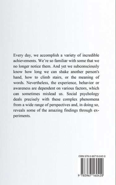 Social Psychology for Beginners: Understanding Socio-Psychological Circumstances 25 Easily-Explicable Socio-Psychological Phenomena Are you interested in social psychology? Do you want to know how our thoughts can mislead us? Do you know when and why we are partially irrational? Learn more about our actions and thoughts via amazing experiences in social psychology "In social psychology, there exist most varied effects that we encounter regularly in everyday life. Some of them can be used positively while others present dangers that can significantly influence one's own actions. In order to be able to react to the respective circumstances in the best possible way, it’s advisable to deal with the effects in detail. In this way, you’ll not only learn how to understand them but will even be able to control and use them later for yourself or prevent them, if they present a danger of negative impact." Learn in this helpful guide... ... when our Humanity can be set aside ... why the word "because" is so powerful ... dangerous thinking errors which we commit unconsciously ... how groups influence our opinion ... if Racism in children can be prevented ... why we take information differently ... why we choose not to help ... and much more! Get the chance today and learn how the human psyche works in social situations with 25 socio-psychological experiments