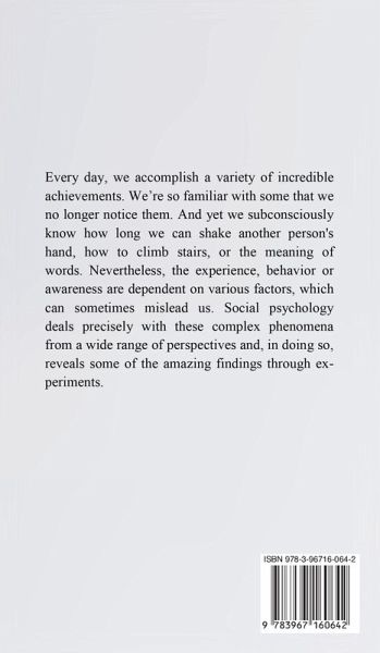 Social Psychology for Beginners: Understanding Socio-Psychological Circumstances 25 Easily-Explicable Socio-Psychological Phenomena Are you interested in social psychology? Do you want to know how our thoughts can mislead us? Do you know when and why we are partially irrational? Learn more about our actions and thoughts via amazing experiences in social psychology "In social psychology, there exist most varied effects that we encounter regularly in everyday life. Some of them can be used positively while others present dangers that can significantly influence one's own actions. In order to be able to react to the respective circumstances in the best possible way, it's advisable to deal with the effects in detail. In this way, you'll not only learn how to understand them but will even be able to control and use them later for yourself or prevent them, if they present a danger of negative impact." Learn in this helpful guide... ... when our Humanity can be set aside ... why the word "because" is so powerful ... dangerous thinking errors which we commit unconsciously ... how groups influence our opinion ... if Racism in children can be prevented ... why we take information differently ... why we choose not to help ... and much more! Get the chance today and learn how the human psyche works in social situations with 25 socio-psychological experiments