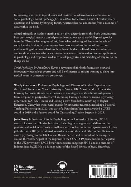 Social Psychology for Foundation Year is a key textbook for both foundation year and introductory psychology courses and will be of interest to anyone wanting to delve into topical issues in contemporary psychology.