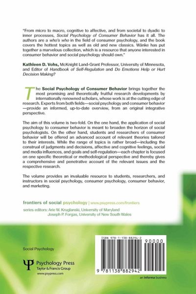 This volume provides coverage of the latest social-psychological research into consumer behavior, including cognitive and affective processes, media influences, and self-regulation.
