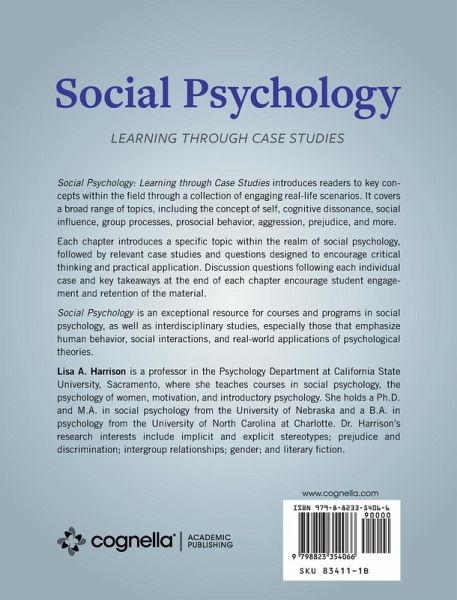 Social Psychology: Learning through Case Studies introduces readers to key concepts within the field through a collection of engaging real-life scenarios. It covers a broad range of topics, including the concept of self, cognitive dissonance, social influence, group processes, prosocial behavior, aggression, prejudice, and more. Each chapter introduces a specific topic within the realm of social psychology, followed by relevant case studies and questions designed to encourage critical thinking and practical application. Discussion questions following each individual case and key takeaways at the end of each chapter encourage student engagement and retention of the material. Social Psychology is an exceptional resource for courses and programs in social psychology, as well as interdisciplinary studies, especially those that emphasize human behavior, social interactions, and real-world applications of psychological theories.