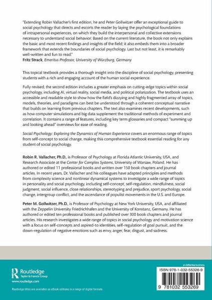 Robin R. Vallacher, Ph.D., is Professor of Psychology at Florida Atlantic University, USA, and Research Associate at the Center for Complex Systems, University of Warsaw, Poland. He has authored or edited 11 professional books and written over 150 book chapters and journal articles. In recent years, Dr. Vallacher and his colleagues have adapted principles and methods from complexity science and nonlinear dynamical systems to investigate a wide range of topics in personality and social psychology, including self-concept, self-regulation, mindfulness, social judgment, social influence, close relationships, stereotyping and prejudice, sport psychology, social change, intergroup conflict, and the ascendance of populist movements in the U.S. and Europe. Peter M. Gollwitzer, Ph.D., is Professor of Psychology at New York University, USA, and affiliated with the Zeppelin University Friedrichhafen and the University of Konstanz, Germany. He has authored or edited ten professional books and published over 300 book chapters and journal articles. His research investigates a wide range of topics in social psychology and motivation science with a focus on self-concepts and aspired-to identities, self-regulation of goal pursuit, and the down-regulation of negative emotions such as envy, anger, fear, disgust, and sadness.