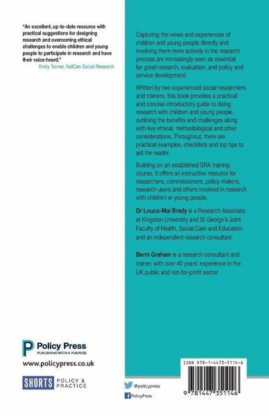 This book provides a practical and concise introductory guide to doing research with children and young people, outlining the benefits and challenges along with key ethical, methodological and other considerations. Throughout, there are practical examples, checklists and top tips to aid the reader.