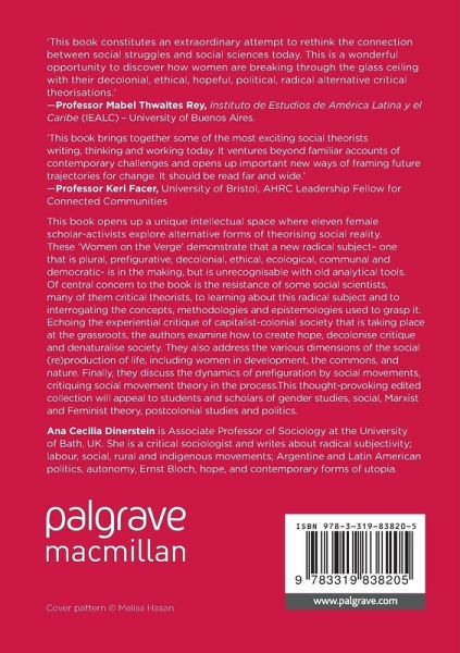 This book opens up a unique intellectual space where eleven female scholar-activists explore alternative forms of theorising social reality. These'Women on the Verge' demonstrate that a new radical subject- one that is plural, prefigurative, decolonial, ethical, ecological, communal and democratic- is in the making, but is unrecognisable with old analytical tools. Of central concern to the book is the resistance of some social scientists, many of them critical theorists, to learning about this radical subject and to interrogating the concepts, methodologies and epistemologies used to grasp it. Echoing the experiential critique of capitalist-colonial society that is taking place at the grassroots, the authors examine how to create hope, decolonise critique and denaturalise society. They also address the various dimensions of the social (re)production of life, including women in development, the commons, and nature. Finally, they discuss the dynamics of prefiguration by social movements, critiquing social movement theory in the process. This thought-provoking edited collection will appeal to students and scholars of gender studies, social, Marxist and Feminist theory, postcolonial studies and politics.