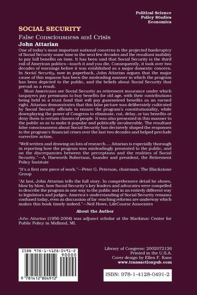 One of today's most important national concerns is the projected bankruptcy of Social Security some time in the next few decades and its consequent inability to pay full benefits on time. Yet despite two decades of warnings about this, nothing is being done. The saying that Social Security is the third rail of American politics-touch it and you die-still holds true. In Social Security: False Consciousness and Crisis, John Attarian argues that the major cause of the current impasse is the misleading manner in which the program has been depicted to the public and the beliefs about Social Security which prevail as a result.Most Americans see Social Security as retirement insurance under which taxpayers pay premiums to buy benefits for old age, with their contributions being held in a trust fund which will pay guaranteed benefits which will be theirs as an earned right as America "keeps its compact between the generations." Attarian demonstrates that this false picture was deliberately fostered by Social Security officials to ensure the program's constitutionality while downplaying the power of Congress to eliminate, cut, delay, or tax benefits or deny them to certain classes of people. As the core of his argument shows, Social Security was structured and presented in this manner to the public as well so as to make it popular and politically invulnerable. While this strategy succeeded, it was inaccurate in crucial respects, and the inaccuracies have worsened as the program has aged. The resultant false consciousness about Social Security has decisively shaped the responses to the program's financial crises over the last two decades and helped preclude corrective action. Attarian attacks all of the misconceptions about Social Security point by point so that debate can proceed based on realities, not misunderstandings. He addresses as well issues surrounding Social Security reform, showing how numerous proposals now circulating have lethal faults. Most of these refuse to cut current benefits and are thereby saddled with the huge costs of transition to a new system. Others risk politicizing the stock market. Virtually all ignore the larger economic and political context that threatens to defeat their purpose. Attarian concludes with his own proposal to radically restructure the program from a universal entitlement to a floor of protection.Treating the Social Security crisis in unusually broad perspective, Attarian is critical of both the status quo and the privatization camps, and his recommendations offer an alternative to both. The book will be of interest to policy makers as well as citizens concerned about the future of Social Security.John Attarian is adjunct scholar at the Mackinac Center for Public Policy in Midland, MI. He is the author of Economism and the National Prospect."A contribution to the important discussion of Social Security's fragile future and our options to restore its health."--Dorcas R. Hardy, former Commissioner of Social Security and author of Social Insecurity: The Crisis in America's Social Security System and How to Plan Now for Your Own Financial SurvivalWell written and drawing on lots of research. Does a good job explaining the coming crisis in Social Security, particularly the often overlooked political aspects. Attarian is especially thorough in reporting how the program was misleadingly presented to the public, and on the discrepancies between the perceptions and the realities of Social Security."--A. Haewoth Robertson, The Retirement Policy Institute"As the United States (along with the rest of the developed countries) debates how to reform our pay-as-you-go retirement system and make it sustainable in an aging world, it is essential that we speak and think clearly about how we got here. We need to look critically at the dysfunctional mythology surrounding words 'trust fund,' 'social insurance,' 'earned rights,' and 'lock box.' That's just what John Attarian does in this comprehensiv