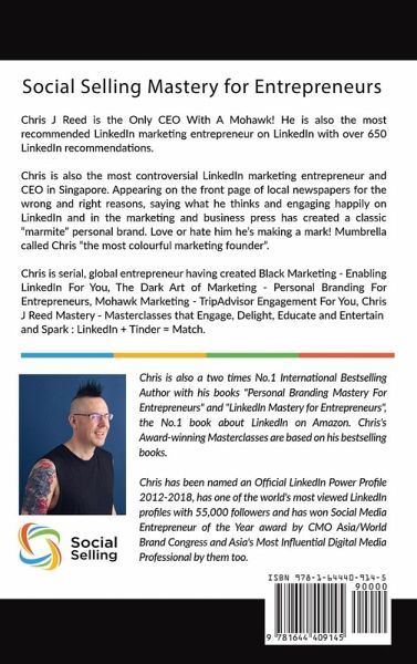 From the three-time #1 bestselling author Chris J. Reed, "the only CEO with a Mohawk!" comes his latest book, Social Selling Mastery for Entrepreneurs. Whether you have heard the phrase "social selling" but don’t know what it entails, or you have been trying to socially sell for years, this book will give you worthwhile insights, actionable advice, and secrets of the trade that Chris has learned in his ongoing career as a global social selling guru. You see, Chris himself used social selling to create Black Marketing, the world’s most recommended LinkedIn marketing agency, and Chris continues to rely on social selling for his business to thrive. Chris is the world’s most recommended LinkedIn marketing masterclass instructor, entrepreneur and founder with 650 LinkedIn recommendations, triple LinkedIn marketing bestselling author, and the only entrepreneur or LinkedIn speaker on the site who is an Official LinkedIn Power Profile seven years running. CEOs, entrepreneurs, and business leaders seek Chris out to gain support with their personal branding, social media presence, employer branding and social selling. In sharing his lessons learned and social selling dos and don'ts, Social Selling Mastery for Entrepreneurs offers an invaluable learning opportunity not to be passed up! In Social Selling Mastery for Entrepreneurs, Chris explains how you, as a business owner and entrepreneur, a CEO, a CMO, or a sales or marketing professional can master social selling. Chris also lays out how LinkedIn, the only business-focused global social media platform, offers an ideal platform for social selling. With LinkedIn's range of tools at your disposal for building your brand, releasing content, and connecting you with its 600 million-plus business professional users, Chris teaches you how to harness all LinkedIn offers so that you can build your own social selling machine and keep it going at high speed for years to come. In Social Selling Mastery for Entrepreneurs, you'll get a highly developed rendering of social selling, complete with anecdotes from Chris's career so that readers who aren’t familiar with the concept can get on board fast. He then highlights the roles of social research, personal branding, and content marketing, showing how they work interdependently in social selling. Additionally, Chris presents various content marketing strategies, as well as the nuances of content marketing you must consider to get the engagement you are aiming for. He presents a convincing case to get you writing and videoing yourself and putting that content out there because it’s the people who show themselves to be thought leaders and experts that enjoy the greatest success in social selling.