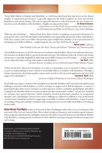 Social skills may impact a student with a disability more than the disability itself. In Social Skills Deficits in Students with Disabilities: Successful Strategies from the Disabilities Field, a variety of professionals share their success strategies so readers (parents, teachers, counselors, psychologists, and others working in the disability field) can incorporate them into their professional "toolbox" and practice.