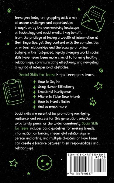 Teenagers today are grappling with a mix of unique challenges and opportunities brought on by the ever-evolving landscape of technology and social media. They benefit from the privilege of having a wealth of information at their fingertips, yet they contend with the complexities of virtual relationships and the scourge of online bullying. In this fast-paced, rapidly changing world, social skills have never been more crucial to forming healthy relationships, communicating effectively, and navigating a myriad of interpersonal obstacles. Social Skills for Teens helps teenagers learn:How to Say No Using Humor Effectively Emotional Intelligence Where to Make New Friends How to Handle Bullies And so much more! Social skills are essential for promoting well-being, resilience, and success for this generation, whether with family, peers, or the wider community. Social Skills for Teens includes basic guidelines for making friends, information on building meaningful relationships in person and online, and multiple chapters on how teens can create a balance between their responsibilities and relationships.