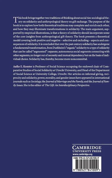 Part I. The gift: meanings and motives: 1. The social meanings of things 2. Patterns of giving and receiving 3. The anatomy of gratitude 4. Women, gifts and power 5. Social theory and social ties 6. Solidarity, gifts and exclusion 7. Family solidarity Part II. Contemporary solidarity: 8. Changing solidarity 9. Social solidarity and the gift References Index.