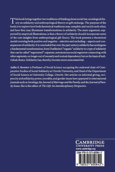 Bringing together two traditions of thinking about social ties (sociological theory on solidarity and anthropological theory on gift exchange), this book explores how both traditions may complete and enrich each other, and clarifies transformations in solidarity. Supported by empirical illustrations, it assumes that a theory of solidarity should incorporate some of the core insights from anthropological gift theory. The volume presents a theoretical model covering both positive and negative--selective and excluding--aspects and consequences of solidarity.