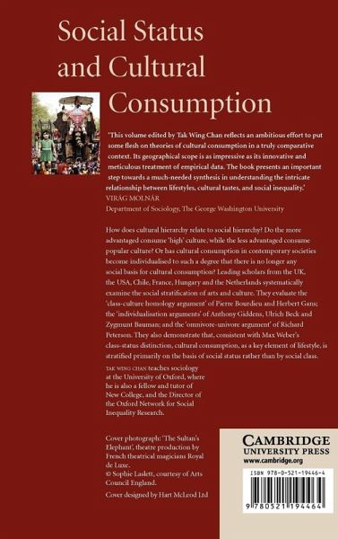 How does cultural hierarchy relate to social hierarchy? Do the more advantaged consume 'high' culture, while the less advantaged consume popular culture? Or has cultural consumption in contemporary societies become individualised to such a degree that there is no longer any social basis for cultural consumption? Leading scholars from the UK, the USA, Chile, France, Hungary and the Netherlands systematically examine the social stratification of arts and culture. They evaluate the 'class-culture homology argument' of Pierre Bourdieu and Herbert Gans; the 'individualisation arguments' of Anthony Giddens, Ulrich Beck and Zygmunt Bauman; and the 'omnivore-univore argument' of Richard Peterson. They also demonstrate that, consistent with Max Weber's class-status distinction, cultural consumption, as a key element of lifestyle, is stratified primarily on the basis of social status rather than by social class.