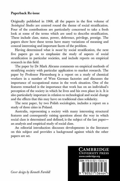 Originally published in 1968, all the papers in the first volume of Sociological Studies are centred round the theme of social stratification. Four of the contributions took a fresh look at some of the terms used to describe stratification. These include class, status, power, deference, privilege, prestige. The papers show how these terms have many variations of meaning and conceal interesting and important facets of the problem. Having determined what is meant by social stratification, the next five papers go on to emphasise the study of aspects of social stratification in particular societies, and include reports on empirical research in this field. An editorial introduction discusses developments in the literature on this subject and provides a background against which the other papers are set.