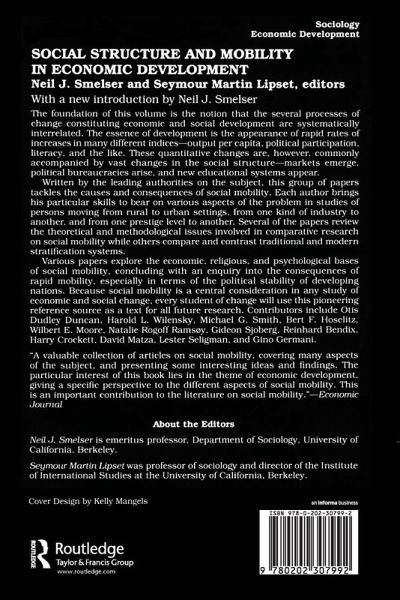 The foundation of this volume is the notion that the several processes of change constituting economic and social development are systematically interrelated. The essence of development is the appearance of rapid rates of increases in many different indices--output per capita, political participation, literacy and the like. These quantitative changes are, however, commonly accompanied by vast changes in the social structure--markets emerge, political bureaucracies arise, and new educational systems appear. Written by the leading authorities on the subject, this group of papers tackles the causes and consequences of social mobility. Each author brings his particular skills to bear on various aspects of the problem in studies of persons moving from rural to urban settings, from one kind of industry to another and from one prestige level to another. Several of the papers review the theoretical and methodological issues involved in comparative research on social mobility while others compare and contrast traditional and modern stratification systems. Various papers explore the economic, religious and psychological basis of social mobility, concluding with enquiry into the consequences of rapid mobility, especially in terms of the political stability of developing nations. Because social mobility is a central consideration in any study of economic and social change, every student of change will use this pioneering reference source as a text for all future research. Contributors include Otis Dudley Duncan, Harold L. Wilensky, Michael G. Smith, Bert F. Hoselitz, Wilbert E. Moore, Natalie Rogoff Rams°y, Gideon Sjoberg, Reinhard Bendix, Harry Crockett, David Matza, Lester Seligman, and Gino Germani. Neil J. Smelser is emeritus professor, Department of Sociology, University of California, Berkeley. Seymour Martin Lipset was professor of sociology and director of the Institute of International Studies at the University of California, Berkeley.