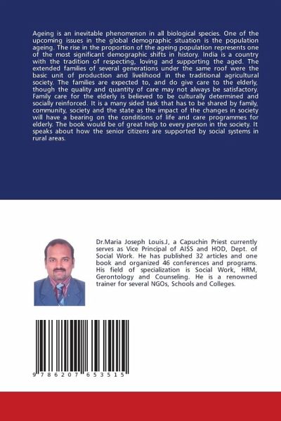 Ageing is an inevitable phenomenon in all biological species. One of the upcoming issues in the global demographic situation is the population ageing. The rise in the proportion of the ageing population represents one of the most significant demographic shifts in history. India is a country with the tradition of respecting, loving and supporting the aged. The extended families of several generations under the same roof were the basic unit of production and livelihood in the traditional agricultural society. The families are expected to, and do give care to the elderly, though the quality and quantity of care may not always be satisfactory. Family care for the elderly is believed to be culturally determined and socially reinforced. It is a many sided task that has to be shared by family, community, society and the state as the impact of the changes in society will have a bearing on the conditions of life and care programmes for elderly. The book would be of great help to every person in the society. It speaks about how the senior citizens are supported by social systems in rural areas.