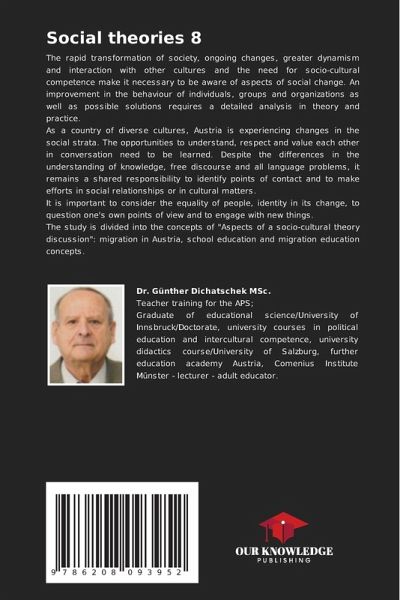 The rapid transformation of society, ongoing changes, greater dynamism and interaction with other cultures and the need for socio-cultural competence make it necessary to be aware of aspects of social change. An improvement in the behaviour of individuals, groups and organizations as well as possible solutions requires a detailed analysis in theory and practice.As a country of diverse cultures, Austria is experiencing changes in the social strata. The opportunities to understand, respect and value each other in conversation need to be learned. Despite the differences in the understanding of knowledge, free discourse and all language problems, it remains a shared responsibility to identify points of contact and to make efforts in social relationships or in cultural matters.It is important to consider the equality of people, identity in its change, to question one's own points of view and to engage with new things. The study is divided into the concepts of "Aspects of a socio-cultural theory discussion": migration in Austria, school education and migration education concepts.