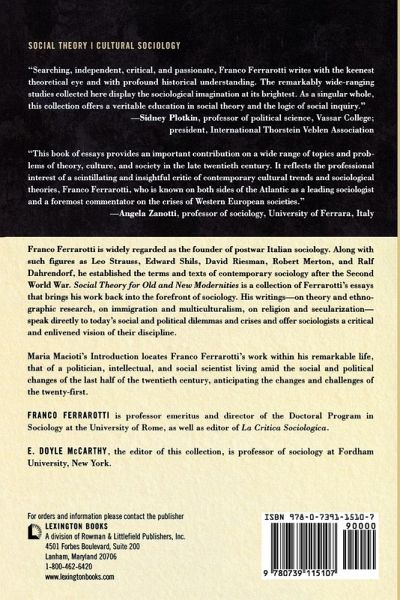 Franco Ferrarotti's essays are of special interest to social scientists working in social theory and cultural sociology. His insights are far-reaching and applicable to those studying the areas of religion, immigration, violence, and social movements.