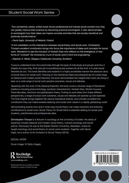 "A rich meditation on the intersection between social theory and social work. Christopher Thorpe's excellent contribution brings into focus the importance of ideas and concepts for social work. Wonderful to see the inclusion of Norbert Elias who reflects on the emergence of new forms of 'civilized' life mirrored by much of social work's front-line engineering." - Stephen A. Webb, Glasgow Caledonian University.