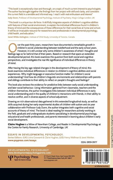 Winner of the British Psychological Society Book Award (Academic Monograph category) 2013! Over the past thirty years, researchers have documented a remarkable growth in children's social understanding between toddlerhood and the early school years. However, it is still unclear why some children's awareness of others' thoughts and feelings lags so far behind that of their peers. Based on research that spans an extended developmental period, this book examines this question from both social and cognitive perspectives, and investigates the real-life significance of individual differences in theory of mind. After tracing the key age-related changes in the development of theory of mind, this book examines individual differences in relation to children's cognitive abilities and their social experiences. Why might language or executive function matter for children's social understanding? And how do children's linguistic environments and relationships with parents and siblings contribute to their ability to reflect on people's thoughts and feelings? The book also reviews the evidence for predictive links between early social understanding and later social behaviour. Using information gathered from classmates, teachers and the children themselves, the author investigates links between individual differences in early social understanding and in the quality of children's interactions with friends, in their ability to resolve conflict, and in diverse aspects of school adjustment. Drawing on rich observational data gathered in this extended longitudinal study, as well as skills acquired during her early experimental studies of children with autism and a six year collaboration with Professor Judy Dunn, the author integrates both cognitive and social accounts of theory of mind. The book is ideal reading for researchers actively working in the field, graduate and undergraduate students specializing in developmental psychology, educational and health professionals, and parents interested in learning about children's early social development.