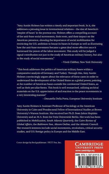 Over the past century, the United States has created a global network of military bases. While the force structure offers protection to US allies, it maintains the threat of violence toward others, both creating and undermining security. Amy Austin Holmes argues that the relationship between the US military presence and the non-US citizens under its security umbrella is inherently contradictory. She suggests that while the host population may be fully enfranchised citizens of their own government, they are at the same time disenfranchised vis-à-vis the US presence. This study introduces the concept of the 'protectariat' as they are defined not by their relationship to the means of production, but rather by their relationship to the means of violence. Focusing on Germany and Turkey, Holmes finds remarkable parallels in the types of social protest that occurred in both countries, particularly non-violent civil disobedience, labor strikes of base workers, violent attacks and kidnappings, and opposition parties in the parliaments.