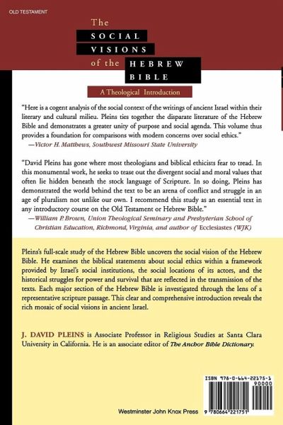 J. David Pleins presents a sociological study of the Hebrew Bible, seeking to uncover its social vision by examining biblical statements about social ethics. He does this within the framework provided by Israel's social institutions, the social locations of its actors, and the historical struggles for power and survival that are reflected in the transmission of the texts.