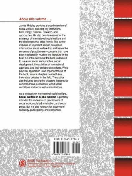 James Midgley provides an overview of social welfare, outlining key institutions, terminology, historical research and approaches. In addition, he details reasons for the existence of international social welfare and the challenges which arise from it. Social Welfare in Global Context includes sections on: applied international social welfare, which addresses the concerns of practitioners; and issues of social work practice, social development, the activities of international agencies and their collaborative efforts. As well as its important focus on practical application, the book also presents key theoretical debates in the field, and provides a comprehensive account of world social conditions and social welfare institutions.