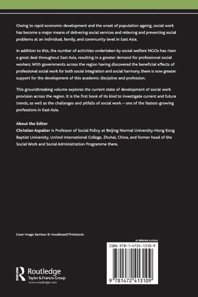Owing to rapid economic development and the onset of population ageing, social work has become a major means of delivering social services and relieving and preventing social problems at an individual, family, and community level in East Asia. In addition to this, the number of activities undertaken by social welfare NGOs has risen a great deal throughout East Asia, resulting in a greater demand for professional social workers. With governments across the region having discovered the beneficial effects of professional social work for both social integration and social harmony, there is now greater support for the development of this academic discipline and profession. This groundbreaking volume explores the current state of development of social work provision across the region. It is the first book of its kind to investigate current and future trends, as well as the challenges and pitfalls of social work - one of the fastest-growing professions in East Asia.