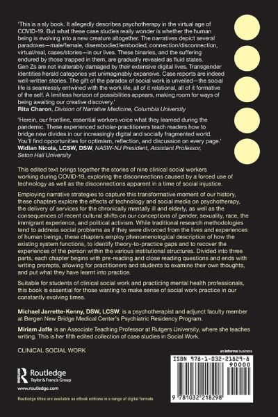 'This is a sly book. It allegedly describes psychotherapy in the virtual age of COVID-19. But what these case studies really wonder is whether the human being is evolving into a new creature altogether. The narratives depict several paradoxes-male/female, disembodied/embodied, connection/disconnection, virtual/real, cases/stories-in our lives. These binaries, and the suffering endured by those trapped in them, are gradually revealed as fluid states. Gen Zs are not inalterably damaged by their extensive digital lives. Transgender identities herald categories yet unimaginably expansive. Case reports are indeed well-written stories. The gift of the paradox of social work is unveiled-the social life is seamlessly entwined with the work life, all of it relational, all of it formative of the self. A limitless horizon of possibilities appears, making room for ways of being awaiting our creative discovery.'