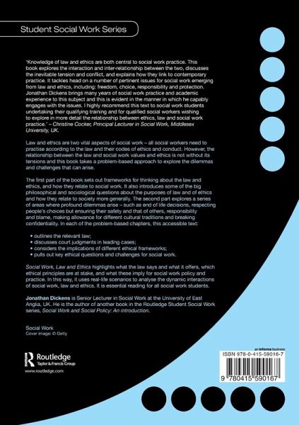This book takes a problem-based approach to explore the dilemmas that arise when the law and social work ethics conflict. It highlights what the law says, what ethical principles are at stake, and what these imply for policy and practice, helping students to develop an understanding of the issues involved.
