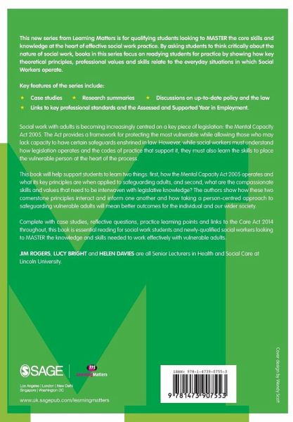 This book will help support students to learn two things: first, how the Mental Capacity Act operates and what its key principles are when applied to safeguarding adults; and second, what are the compassionate skills and values that need to be interwoven with legislative knowledge? The authors show how these two principles interact and inform one another and how taking a person-centred approach to safeguarding vulnerable adults will mean better outcomes for the individual and our wider society.