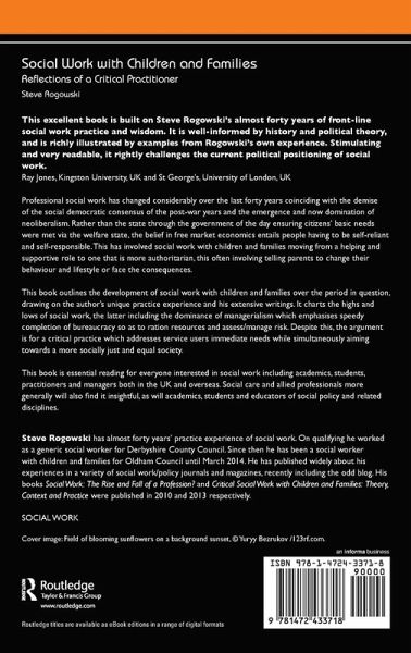 This book outlines the development of social work with children and families over the last 40 years, drawing on the author's unique practice experience and his extensive writings. It charts the highs and lows of social work, the latter including the dominance of managerialism which emphasises speedy completion of bureaucracy so as to ration resources and assess/manage risk. This book is essential reading for everyone interested in social work including academics, students, practitioners and managers both in the UK and overseas.