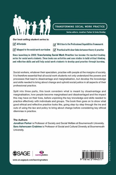 Social workers, whatever their specialism, practise with people at the margins of society. It is therefore essential that all social work students not only understand the powers and processes that lead to disadvantage and marginalisation but develop the knowledge and skills needed to bring about change and uphold social justice in all aspects of their professional practice. Split into three parts, this book considers what is meant by disadvantage and marginalisation, how this can come about and the impact this may have on lives, before unpicking the key knowledge and skills needed to practice effectively with individuals and groups. It then goes on to show what good ethical and reflective practice looks like, going step-by-step through the ins and outs of using the law and policy to bring about change before considering key ethical dilemmas in practice.