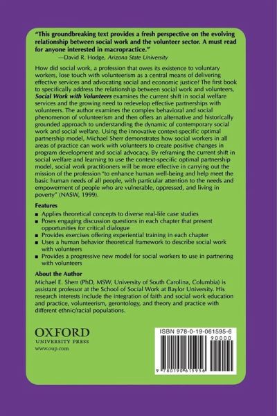 The first book to specifically address the relationship between social work and volunteers, Social Work with Volunteers examines the current shift in social welfare services and the growing need to develop effective partnerships with volunteers. As the primary profession in the development, provision, and evaluation of social services, social workers are in a position to shape how agency administrators, direct staff, and volunteers work together to provide services. Using the groundbreaking Context-Specific Optimal Partnership (CSOP) model, the author demonstrates how social workers in all areas of practice can work with volunteers to create a positive change. Social Work with Volunteers is organized around three basic themes: volunteerism as a complex behavioral and social phenomenon, the historical relationship between social work and volunteers, and the development and application of the CSOP model.