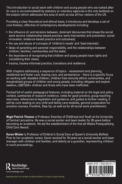 With chapters addressing a sequence of topics - assessment and planning, residential and foster care, leaving care, and permanence - there is a specific focus on working with disabled children, children from minority ethnic communities, and marginalised groups of children and young people, including refugees and asylum seekers, LGBTQIA+ children and those who have been trafficked.