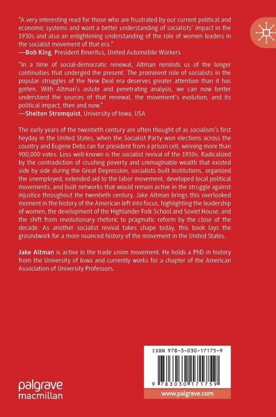 The early years of the twentieth century are often thought of as socialism's first heyday in the United States, when the Socialist Party won elections across the country and Eugene Debs ran for president from a prison cell, winning more than 900,000 votes. Less well-known is the socialist revival of the 1930s. Radicalized by the contradiction of crushing poverty and unimaginable wealth that existed side by side during the Great Depression, socialists built institutions, organized the unemployed, extended aid to the labor movement, developed local political movements, and built networks that would remain active in the struggle against injustice throughout the twentieth century. Jake Altman brings this overlooked moment in the history of the American left into focus, highlighting the leadership of women, the development of the Highlander Folk School and Soviet House, and the shift from revolutionary rhetoric to pragmatic reform by the close of the decade. As another socialist revival takes shape today, this book lays the groundwork for a more nuanced history of the movement in the United States.