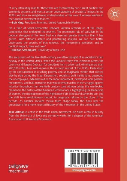 The early years of the twentieth century are often thought of as socialism's first heyday in the United States, when the Socialist Party won elections across the country and Eugene Debs ran for president from a prison cell, winning more than 900,000 votes. Less well-known is the socialist revival of the 1930s. Radicalized by the contradiction of crushing poverty and unimaginable wealth that existed side by side during the Great Depression, socialists built institutions, organized the unemployed, extended aid to the labor movement, developed local political movements, and built networks that would remain active in the struggle against injustice throughout the twentieth century. Jake Altman brings this overlooked moment in the history of the American left into focus, highlighting the leadership of women, the development of the Highlander Folk School and Soviet House, and the shift from revolutionary rhetoric to pragmatic reform by the close of the decade. As another socialist revival takes shape today, this book lays the groundwork for a more nuanced history of the movement in the United States.