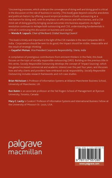 'Brian Nicholson, Ron Babin and Mary Lacity have brought together a thought-provoking collection of articles which provide a definitive picture of the developments in socially responsible sourcing. The case studies they describe demonstrate the wide diversity of people and communities who have been benefiting from initiatives driven by a socially responsible sourcing vision. An impressive and heart-warming read."