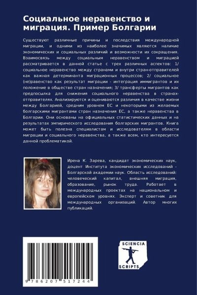 Suschestwuüt razlichnye prichiny i posledstwiq mezhdunarodnoj migracii, i odnimi iz naibolee znachimyh qwlqütsq nalichie äkonomicheskih i social'nyh razlichij i wozmozhnosti ih sokrascheniq. Vzaimoswqz' mezhdu social'nym nerawenstwom i migraciej rassmatriwaetsq w dannoj stat'e s treh razlichnyh aspektow: 1/ social'noe nerawenstwo mezhdu stranami i wnutri stran-otprawitelej kak wazhnaq determinanta migracionnyh processow; 2/ social'noe (ne)rawenstwo kak rezul'tat migracii - integraciq immigrantow i ih polozhenie w obschestwe stran naznacheniq; 3/ transferty migrantow kak predposylka dlq snizheniq social'nogo nerawenstwa w stranah-otprawitelqh. Analiziruütsq i oceniwaütsq razlichiq w kachestwe zhizni mezhdu Bolgariej, srednim urownem ES i nekotorymi iz zhelaemyh bolgarskimi migrantami stran naznacheniq ES, a takzhe nerawenstwa w Bolgarii. Oni osnowany na oficial'nyh statisticheskih dannyh i na rezul'tatah ämpiricheskogo issledowaniq bolgarskih migrantow. Kniga mozhet byt' polezna specialistam i issledowatelqm w oblasti migracii i social'nogo nerawenstwa, a takzhe wsem, kto interesuetsq dannoj problematikoj.