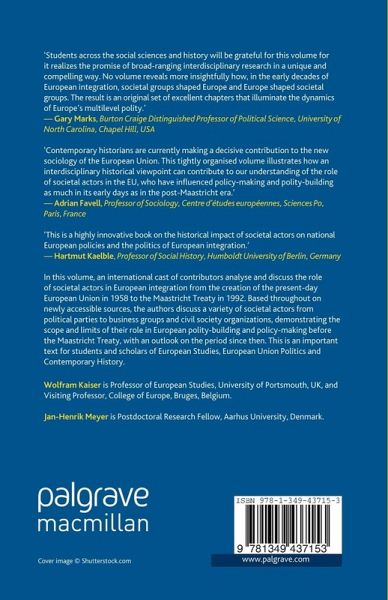 'Contemporary historians are currently making a decisive contribution to the new sociology of the European Union. This tightly organised volume illustrates how an interdisciplinary historical viewpoint can contribute to our understanding of the role of societal actors in the EU, who have influenced policy-making and polity-building as much in its early days as in the post-Maastricht era.'