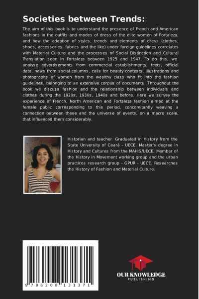 The aim of this book is to understand the presence of French and American fashions in the outfits and modes of dress of the elite women of Fortaleza, and how the adoption of styles, trends and elements of dress (clothes, shoes, accessories, fabrics and the like) under foreign guidelines correlates with Material Culture and the processes of Social Distinction and Cultural Translation seen in Fortaleza between 1925 and 1947. To do this, we analyse advertisements from commercial establishments, texts, official data, news from social columns, calls for beauty contests, illustrations and photographs of women from the wealthy class who fit into the fashion guidelines, belonging to an extensive corpus of documents. Throughout the book we discuss fashion and the relationship between individuals and clothes during the 1920s, 1930s, 1940s and before. Here we survey the experience of French, North American and Fortaleza fashion aimed at the female public corresponding to this period, concomitantly weaving a connection between these and the universe of events, on a macro scale, that influenced them considerably.