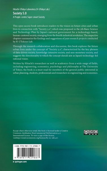 Through the research collaboration and discussion, this book explores the future urban lives under the concept of "Society 5.0", characterized by the key phrases of data-driven society, knowledge-intensive society, and non-monetary society, and suggests the directionality to which the concept should aim as Japan's technology-led national vision.