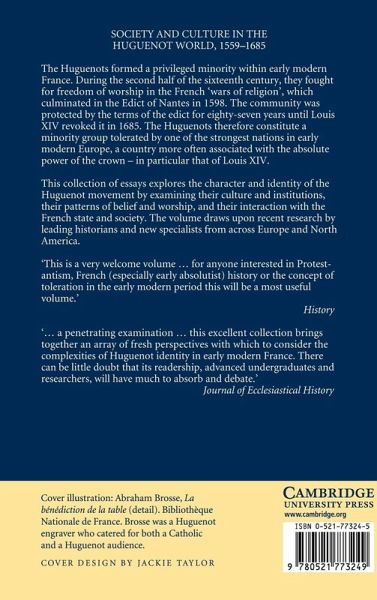 Preface; 1. Introduction: Etre protestant Raymond A. Mentzer and Andrew Spicer; 2. Preaching, printing, psalm-singing: the making and unmaking of the Reformed Church in Lyon, 1550-1572 Timothy Watson; 3. Religious polemic and Huguenot self-perception and identity, 1554-1619 Luc Racaut; 4. Confessionalisation in France? Critical reflections and new evidence Philip Benedict; 5. Huguenot petitioning during the Wars of Religion Penny Roberts; 6. Informal networks in sixteenth-century French Protestantism Mark Greengrass; 7. The Edict of Nantes and its institutions Raymond A. Mentzer; 8. 'Speaking the King's language': the Huguenot magistrates of Castres and Pau S. Amanda Eurich; 9. The Huguenot academies: preparing for an uncertain future Karin Maag; 10. Huguenot poor relief and health care in the sixteenth and seventeenth centuries Martin Dinges; 11. 'Qui est de Dieu, oit la parole de Dieu'; the Huguenots and their temples Andrew Spicer; 12. 'Ensevelir honnestement les corps': funeral corteges and Huguenot culture Bernard Roussel; 13. Huguenot militancy and the seventeenth-century Wars of Religion Alan James; 14. Epilogue Raymond A. Mentzer and Andrew Spicer.