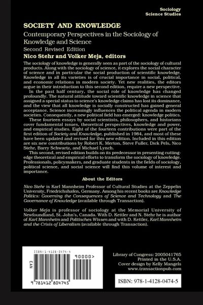 The sociology of knowledge is generally seen as part of the sociology of cultural products. Along with the sociology of science, it explores the social character of science and in particular the social production of scientific knowledge. Knowledge in all its varieties is of crucial importance in social, political, and economic relations in modern society. Yet new realities, the editors argue in their introduction to this second edition, require a new perspective. In the past half century, the social role of knowledge has changed profoundly. The natural attitude toward scientific knowledge in science that assigned a special status to science's knowledge claims has lost its dominance, and the view that all knowledge is socially constructed has gained general acceptance. Science increasingly influences the political agenda in modern societies. Consequently, a new political field has emerged: knowledge politics. These fourteen essays by social scientists, philosophers, and historians cover fundamental issues, theoretical perspectives, knowledge and power, and empirical studies. Eight of the fourteen contributions were part of the first edition of Society and Knowledge, published in 1984, and most of these have been updated and revised for this new edition. Included in this edition are six new contributions by Robert K. Merton, Steve Fuller, Dick Pels, Nico Stehr, Barry Schwartz, and Michael Lynch. This second, revised edition builds on its predecessor in presenting cutting-edge theoretical and empirical efforts to transform the sociology of knowledge. Professionals, policymakers, and graduate students in the fields of sociology, political science, and social science will find this volume of interest and importance.