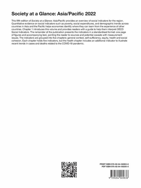 This fifth edition of Society at a Glance: Asia/Pacific provides an overview of social indicators for the region. Quantitative evidence on social indicators such as poverty, social expenditures, and demographic trends across countries in Asia and the Pacific helps economies identify where they can learn from the experience of other countries.