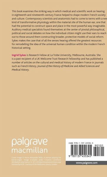 This book examines the striking way in which medical and scientific work on hearing in 18th and 19th-century France helped to shape modern French society and culture. The author argues that of all the senses hearing offered the greatest resources for remodelling the idea of the universal human condition within the modern French historical setting.