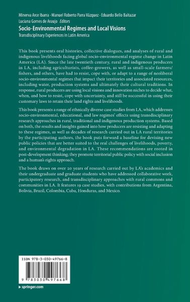 This book presents a range of ethnically diverse case studies from LA, which addresses socio-environmental, educational, and law regimes' effects usingtransdisciplinary research approaches in rural, traditional and indigenous production systems. Based on both, the results and insights gained into how producers are resisting and adapting to these regimes, as well as decades of research carried out in LA rural territories by the participating authors, the book puts forward a baseline for devising new public policies that are better suited to the real challenges of livelihoods, poverty, and environmental degradation in LA. These recommendations are rooted in post-development thinking; they promote territorial public policy with social inclusion and a human's rights approach.