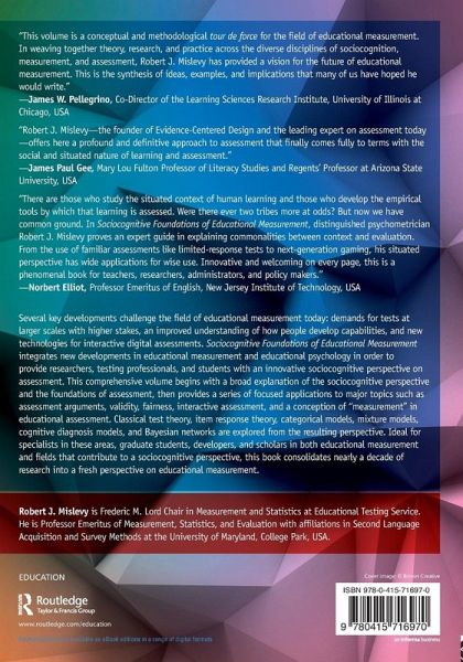 Several key developments challenge the field of educational measurement today: demands for tests at larger scales with higher stakes, an improved understanding of how people develop capabilities, and new technologies for interactive digital assessments. Sociocognitive Foundations of Educational Measurement integrates new developments in educational measurement and educational psychology in order to provide researchers, testing professionals, and students with an innovative sociocognitive perspective on assessment. This comprehensive volume begins with a broad explanation of the sociocognitive perspective and the foundations of assessment, then provides a series of focused applications to major topics such as assessment arguments, validity, fairness, interactive assessment, and a conception of "measurement" in educational assessment. Classical test theory, item response theory, categorical models, mixture models, cognitive diagnosis models, and Bayesian networks are explored from the resulting perspective. Ideal for specialists in these areas, graduate students, developers, and scholars in both educational measurement and fields that contribute to a sociocognitive perspective, this book consolidates nearly a decade of research into a fresh perspective on educational measurement.
