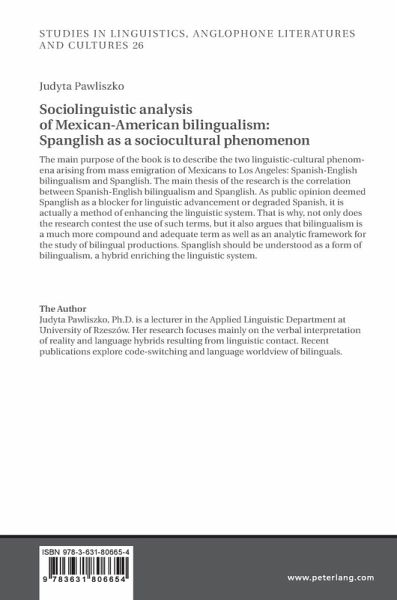 The main purpose of the book is to describe the two linguistic-cultural phenomena arising from mass emigration of Mexicans to Los Angeles: Spanish-English bilingualism and Spanglish. The main thesis of the research is the correlation between Spanish-English bilingualism and Spanglish. As public opinion deemed Spanglish as a blocker for linguistic advancement or degraded Spanish, it is actually a method of enhancing the linguistic system. That is why, not only does the research contest the use of such terms, but it also argues that bilingualism is a much more compound and adequate term as well as an analytic framework for the study of bilingual productions. Spanglish should be understood as a form of bilingualism, a hybrid enriching the linguistic system.